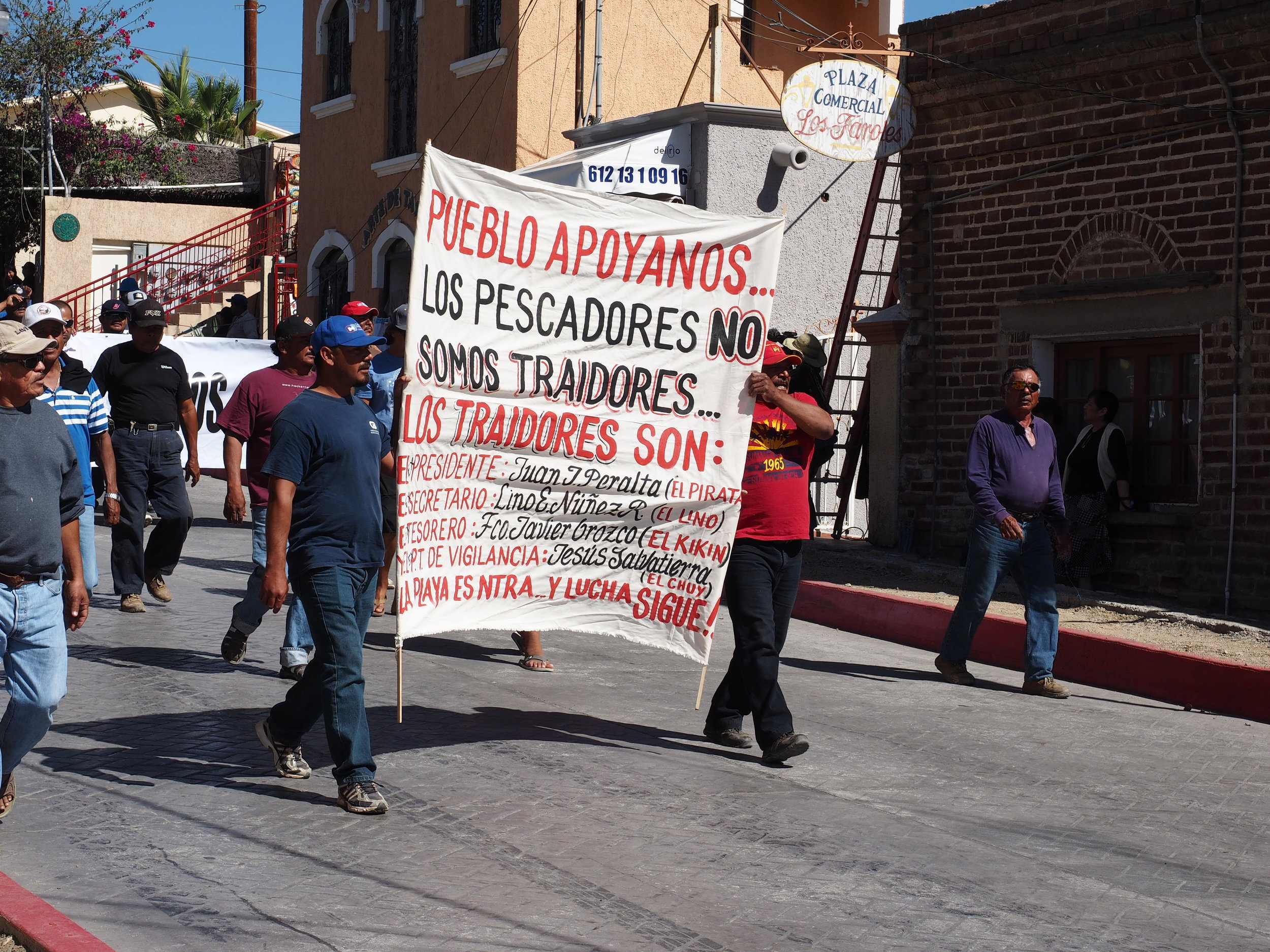 The first fishermen's blockade. The Punta Lobos fishermen camped on the road to the beach to block the construction workers from entering the development site.